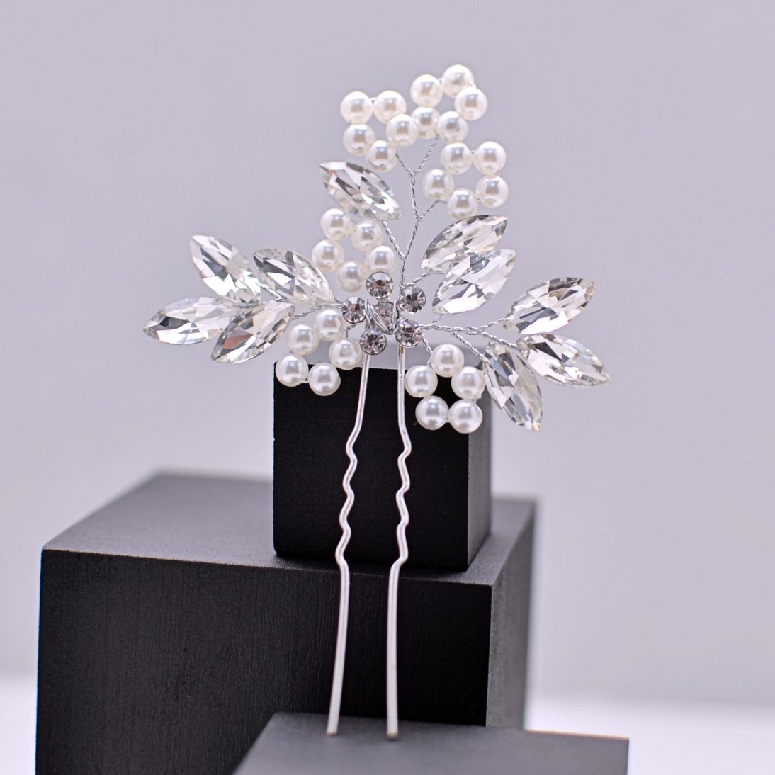 Fie că optezi pentru un coc sau o coafură lejeră, acest accesoriu de păr pentru mireasă te va scoate în evidență prin eleganța și delicatețea sa.