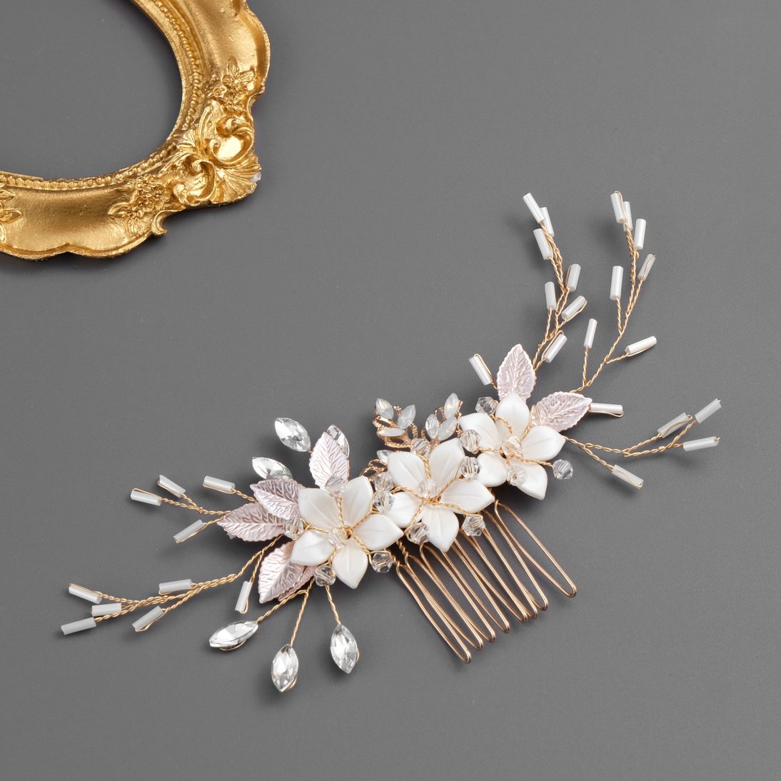 O bijuterie delicată pentru păr. Florile emană eleganță, iar mărgeluțele delicate împodobesc crenguțele, adăugând un aer de rafinament.