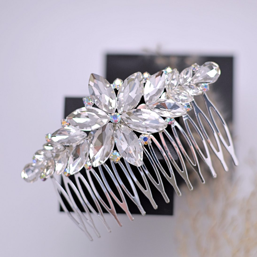 Grație sistemului de prindere de tip pieptăn, acest accesoriu de păr se integrează armonios în orice coafură, aducând un plus de strălucire și eleganță în ziua cea mare. Un amestec perfect de lux și subtilitate pentru o apariție cu adevărat memorabilă.