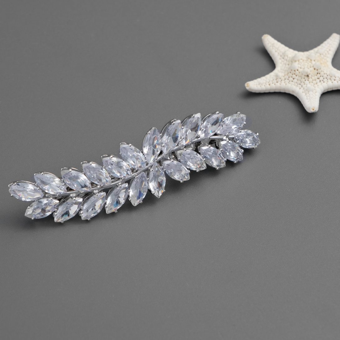 Rafinamentul naturii este imortalizat în acest accesoriu pentru păr destinat miresei, cu pietre zirconiu dispuse sub forma delicatelor frunze pe o crenguță. Fiecare detaliu strălucește într-un dans subtil al eleganței.