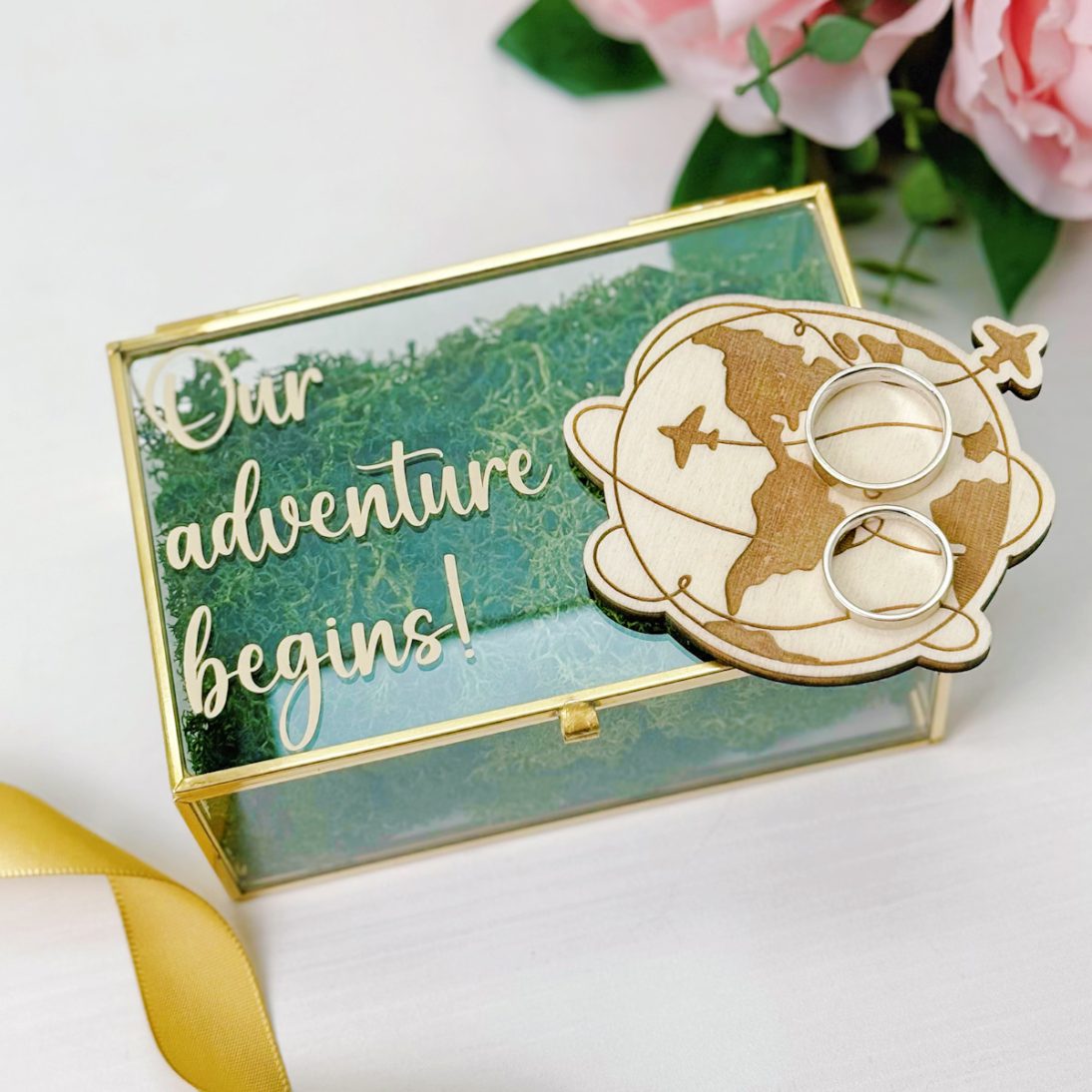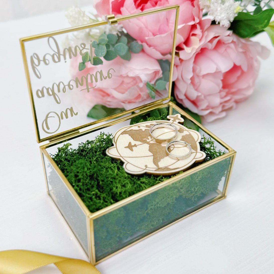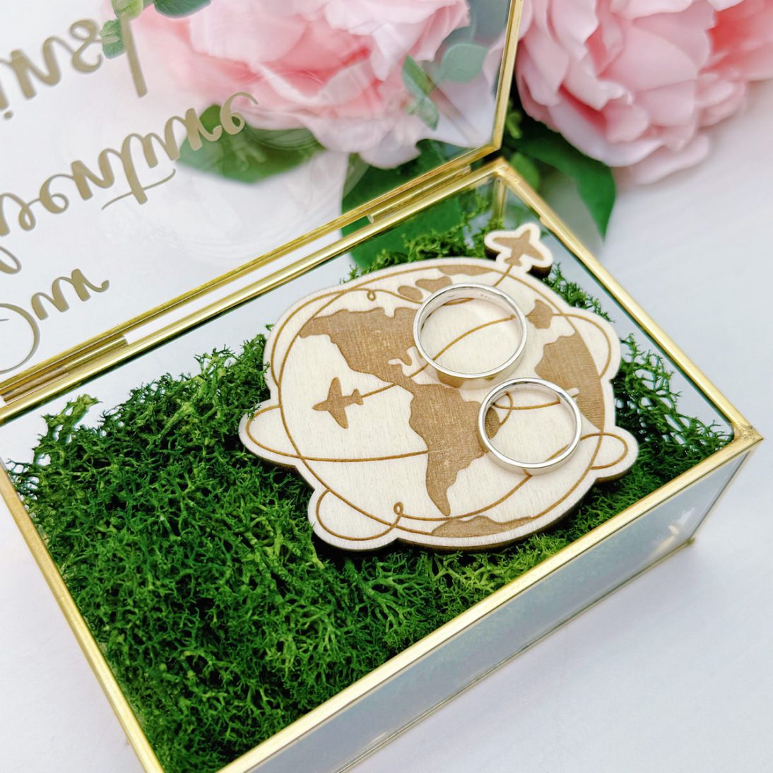 O casetă pentru verighete potrivită pentu doi miri pasionați de călătorii.