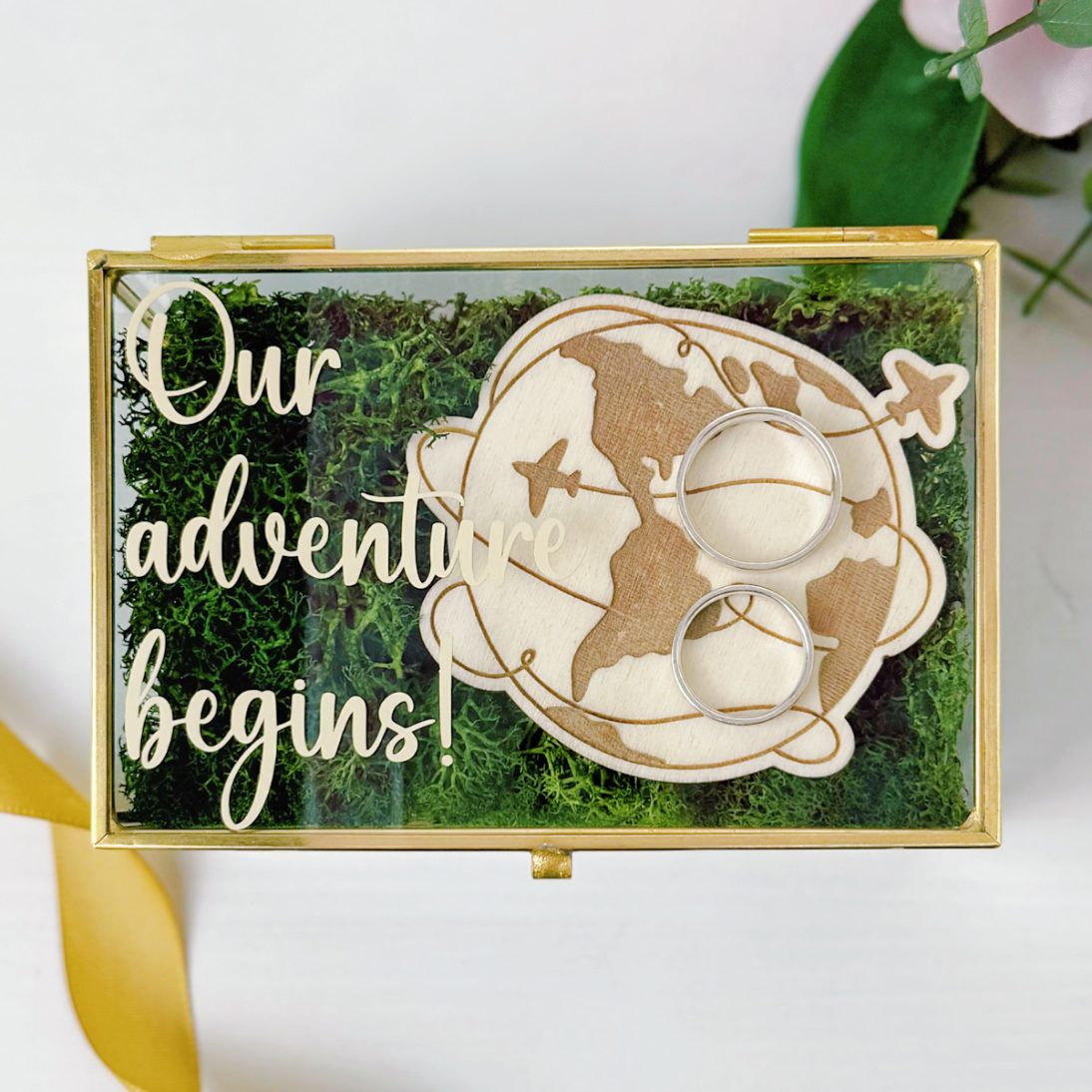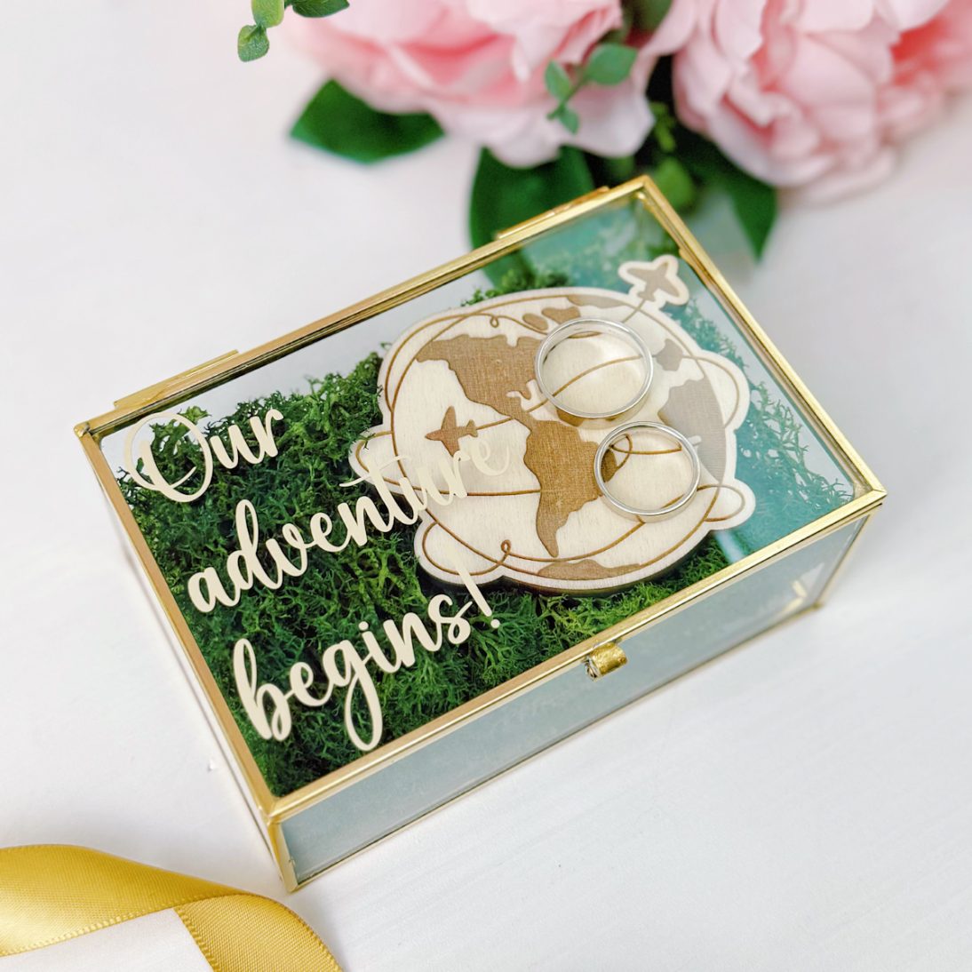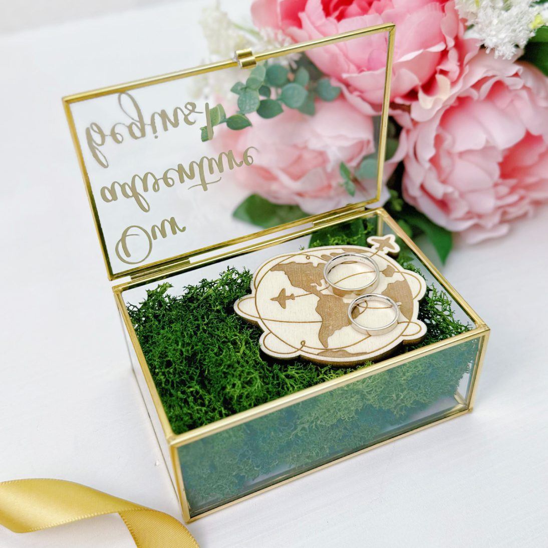 O casetă pentru verighete potrivită pentu doi miri pasionați de călătorii.