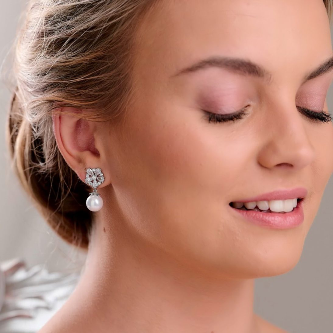Perlele ivoire și cristalele de zirconiu, cu reflexii vii, aduc o aură luminoasă, transformând orice mireasă într-o prezență strălucitoare. Această pereche de cercei reprezintă o alegere perfectă pentru o mireasă modernă, dornică să strălucească în ziua ei specială.