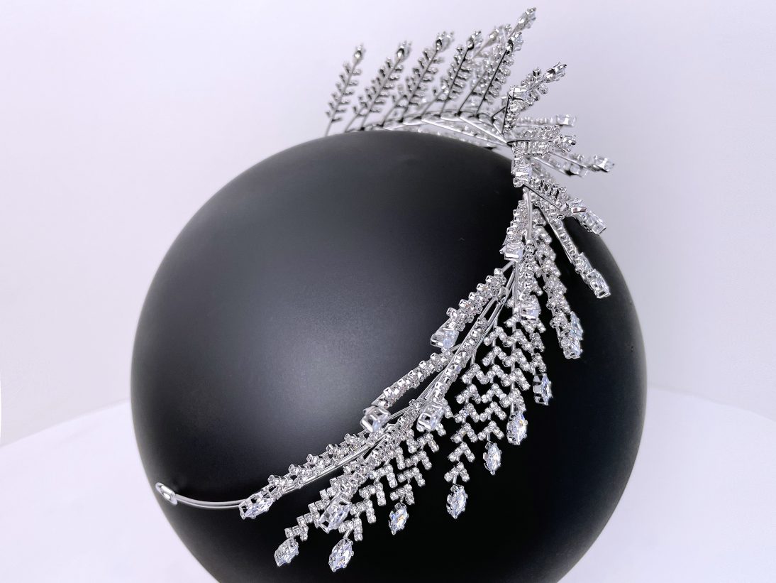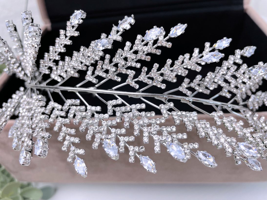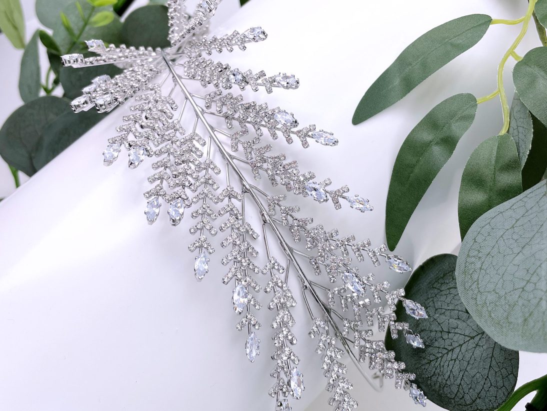 Oferă coafurii tale un aspect romantic și sensibil cu această coroniță argintie, cu elemente inspirate din natură.