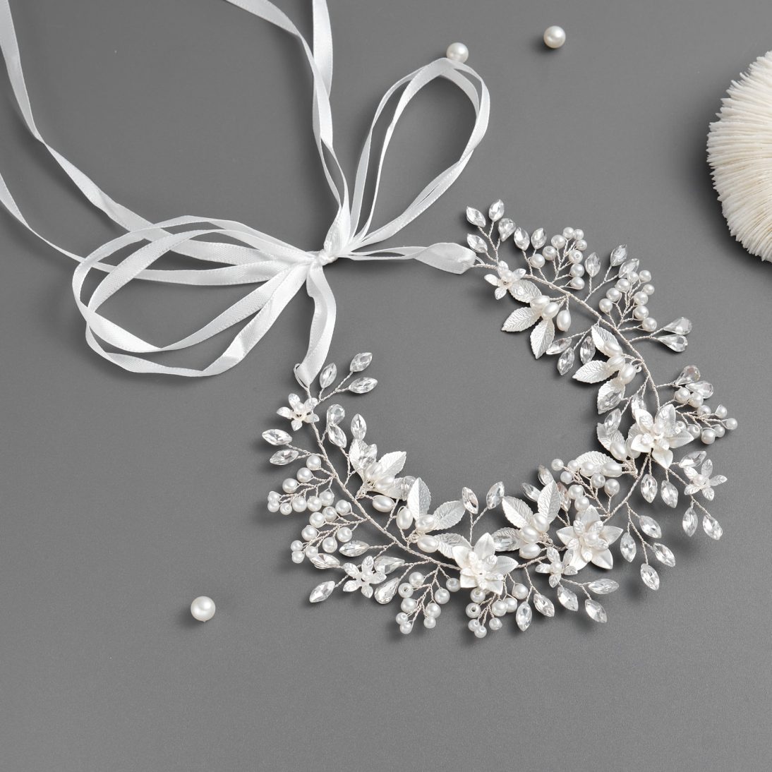 Cu acest accesoriu, vei străluci în ziua nunții tale, iar cristalele strălucitoare și perlele ivoire vor crea un joc subtil de lumini, evidențiind frumusețea ta naturală.