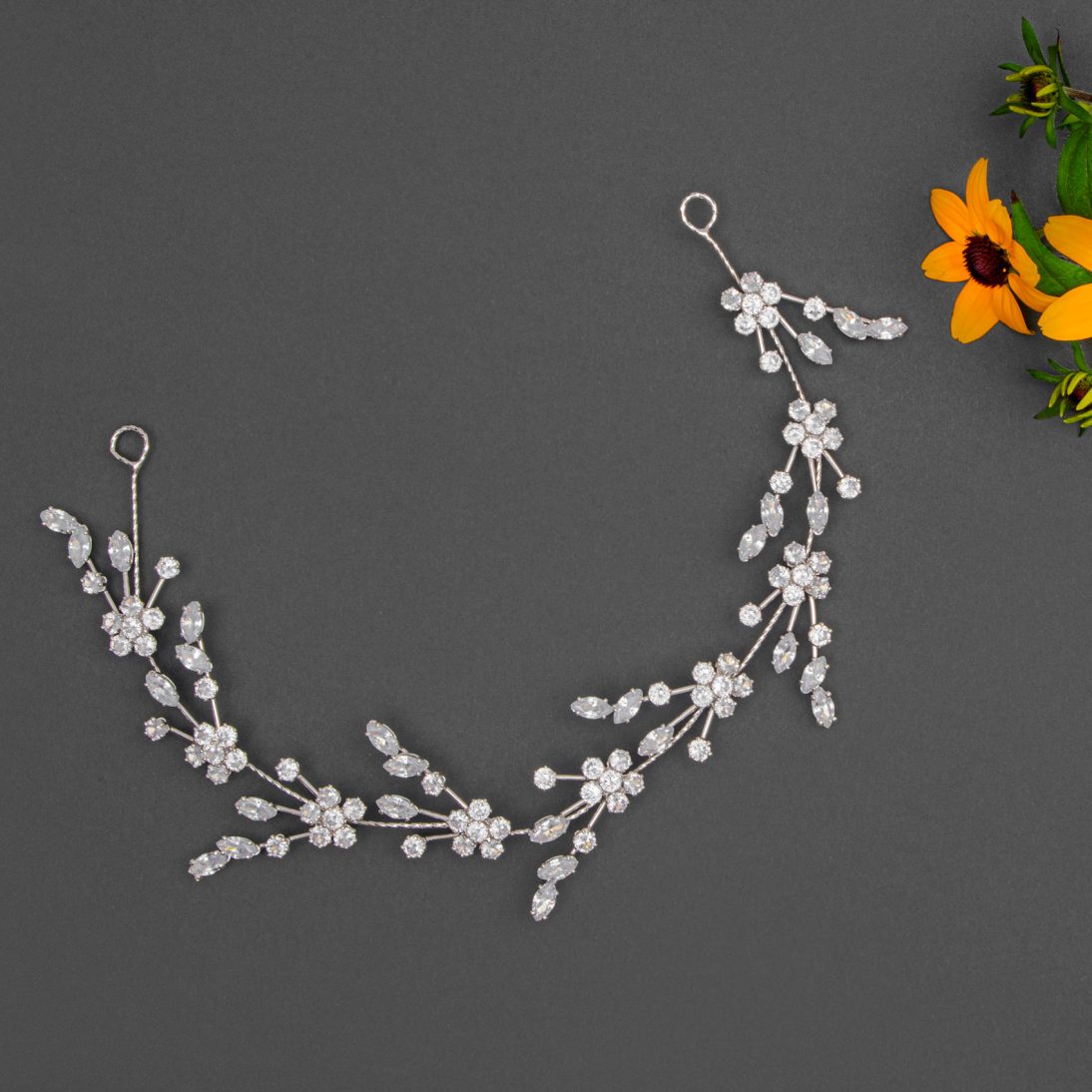 Această coroniță reprezintă o alegere rafinată pentru miresele moderne, aducând o notă subtilă de strălucire. Cu designul său sofisticat, se fixează ușor în păr, completând cu grație coafura miresei pentru un aspect desăvârșit.