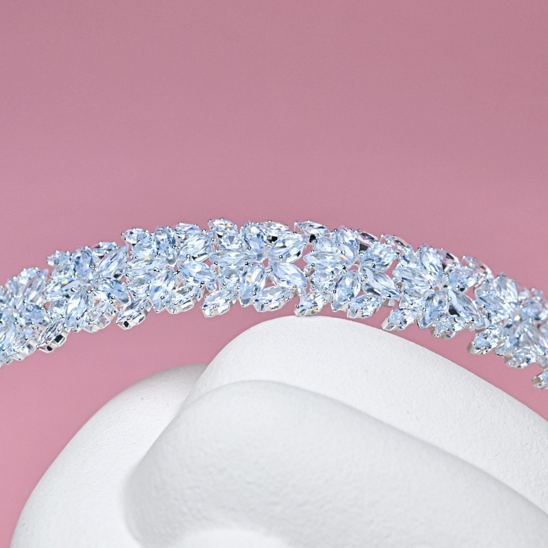 Sclipirile diafane ale zirconiului, așezate cu grijă pe o bază delicată, conferă o eleganță sublimă.