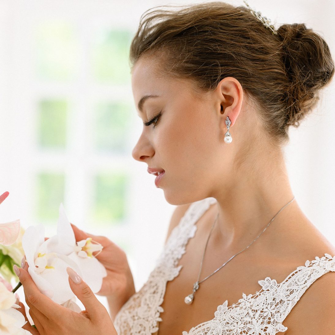 Material: Aliaj metalic hipoalergenic (fără nichel sau plumb) placat cu rodiu, perle și cristale din zirconiu cubic