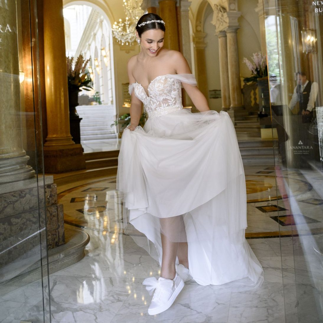 Pentru un plus de versatilitate, pantofii includ două perechi de șireturi, una din organza și una din satin, astfel încât să îți personalizezi stilul în funcție de rochie sau preferințe.