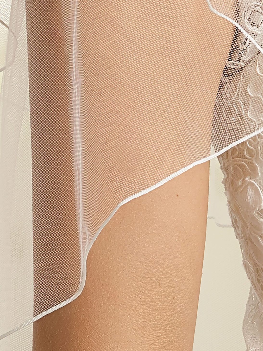 Descriere: Voal de mireasă în două straturi cu tiv ondulat.